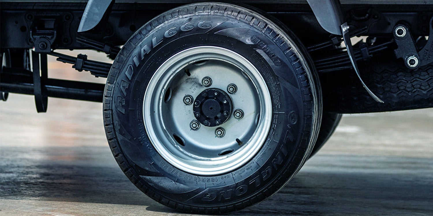 Peso de carga sobre chasis de 1.83 T, complementado con ballestas resistentes en las suspensiones delanteras y traseras. Toda la serie incluye neumáticos radiales de alta carga para una tracción óptima, con neumáticos simples en la parte trasera. Seguridad elevada con una estructura amortiguadora de energía en colisiones, el TRUCK MATE ofrece una combinación perfecta de fuerza y protección en cada viaje.